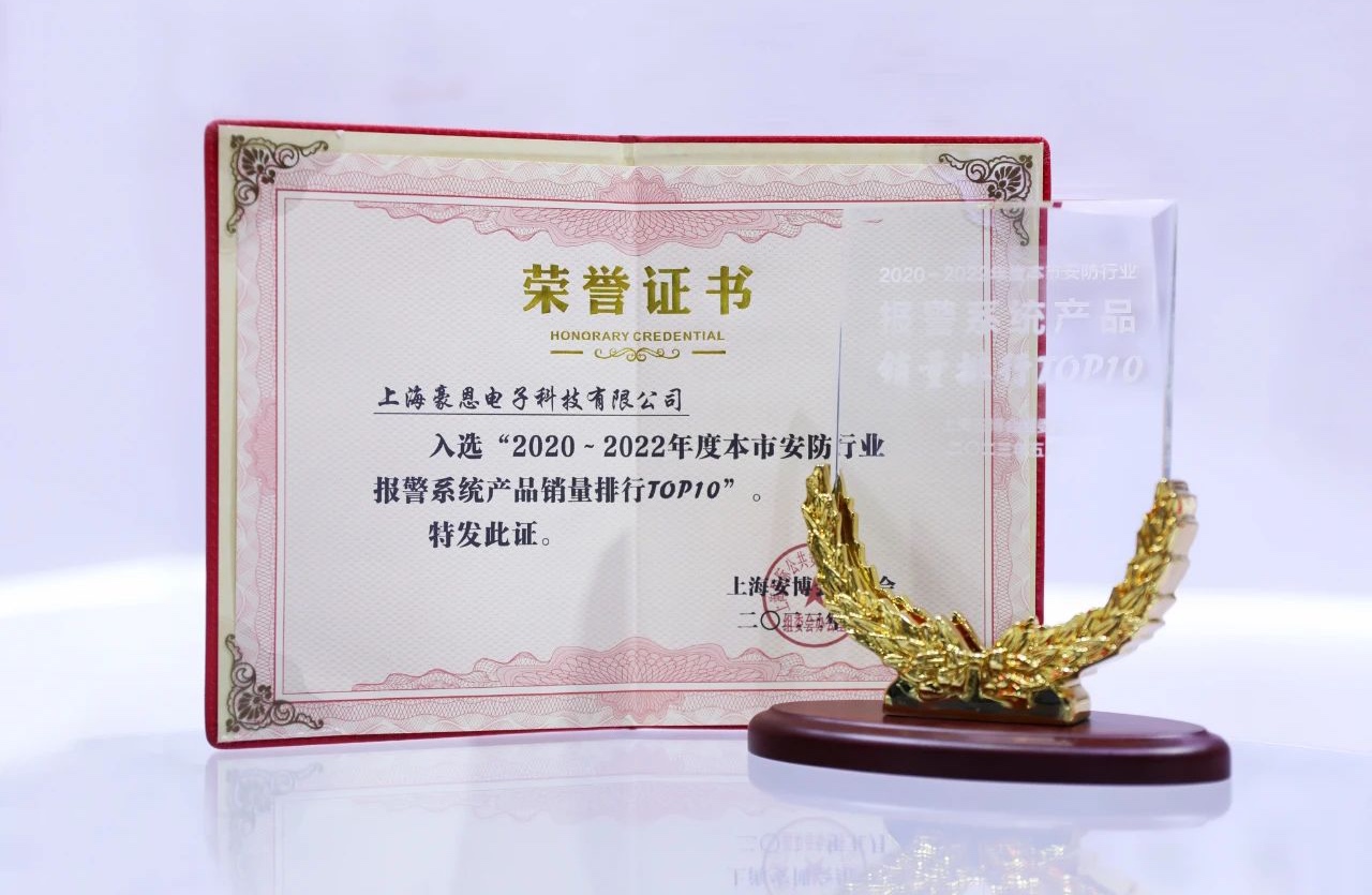 At the same time, on the afternoon of May 17th, the 20th Shanghai Security Expo Appreciation Dinner and Outstanding Security Enterprise Award Ceremony were held at the Shanghai Greenland Marriott Hotel. Haoen won the "Top 10 Sales Ranking of Security Industry Alarm System Products in Our City for the Year 2020 to 2022" industry award in one fell swoop. With its solutions and innovative products in the field of security, Haoen has demonstrated the cohesion and innovation of its brand through its achievements and sales.