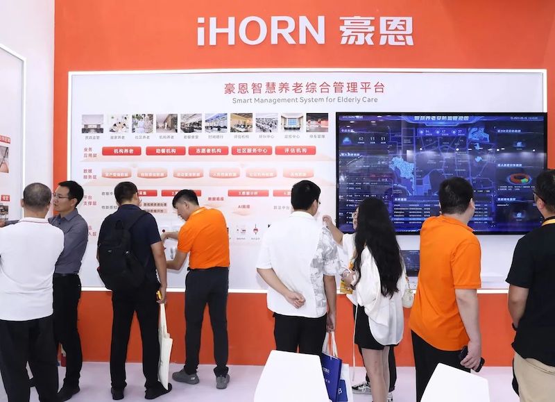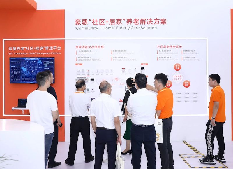 在4號(hào)館4D60展位上,豪恩橙色展臺(tái)獨(dú)樹(shù)一幟,現(xiàn)場(chǎng)展示了智慧養(yǎng)老綜合管理平臺(tái)、社區(qū)+居家養(yǎng)老解決方案以及機(jī)構(gòu)養(yǎng)老解決方案三大展區(qū),吸引了行業(yè)內(nèi)眾多企業(yè)與專(zhuān)家參觀。