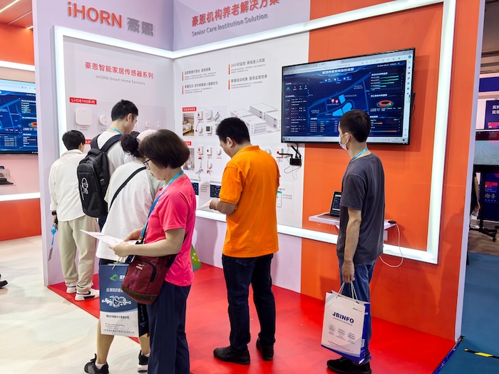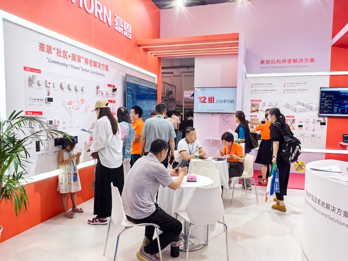 展會現(xiàn)場,豪恩全方位展示了居家安全防護系列、呼叫告警系列、定位穿戴系列、健康監(jiān)護系列在“社區(qū)+居家養(yǎng)老”、“機構養(yǎng)老”等多領域的場景應用,吸引了眾多參展商和觀眾來展位體驗參觀。