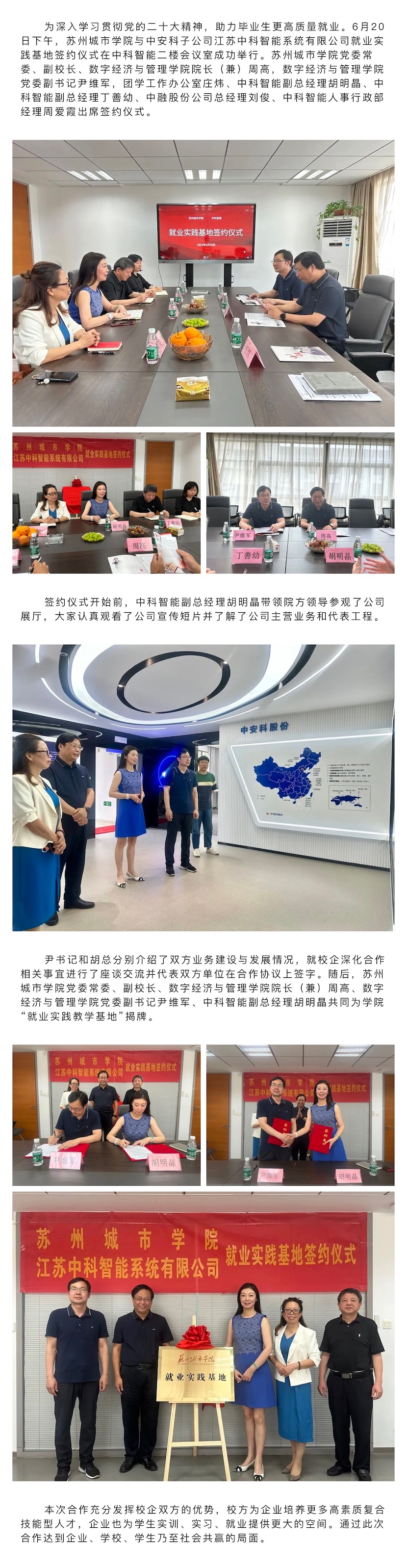 蘇州城市學(xué)院與中安科子公司江蘇中科智能系統(tǒng)有限公司簽約就業(yè)實踐基地