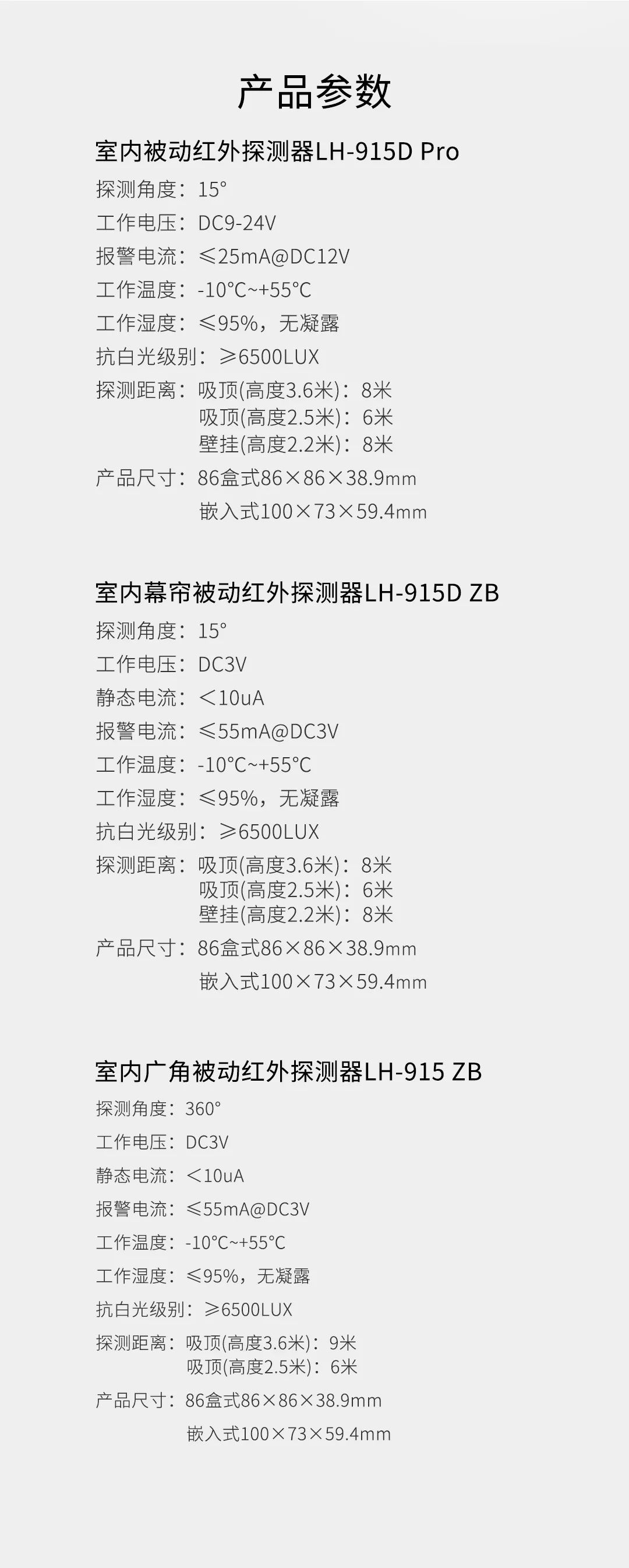 豪恩安防室內(nèi)被動紅外探測器 LH-915 系列