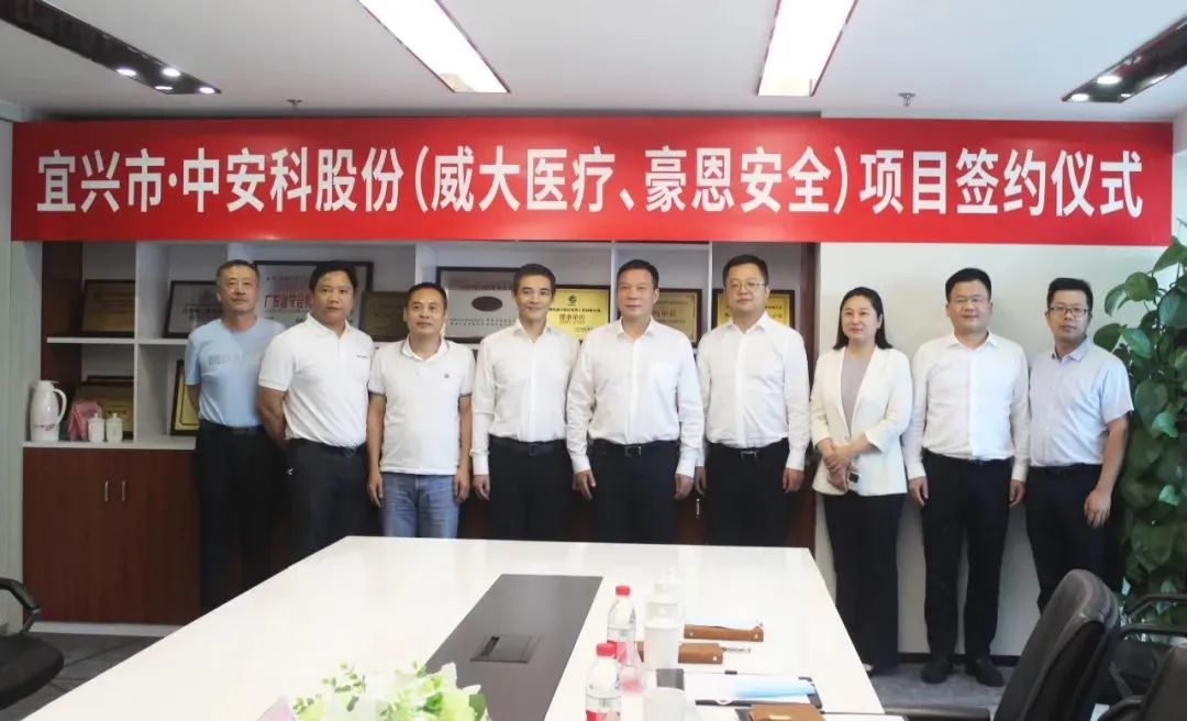 項(xiàng)目合作簽約儀式上,中安科子公司(威大醫(yī)療、豪恩安全)分別與宜興市陽(yáng)羨生態(tài)旅游度假區(qū)簽訂了新型項(xiàng)目合作協(xié)議。