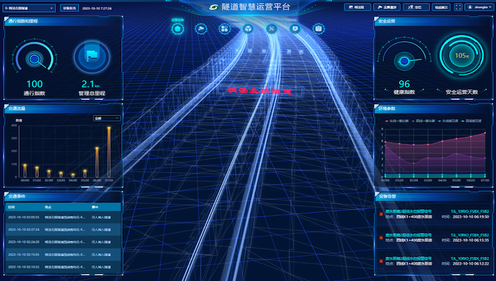 本系統(tǒng)采用人工智能技術,將實體隧道與虛擬模型進行映射和交互,系統(tǒng)通過多維智能感知技術,利用各類傳感器和監(jiān)測設備,對隧道內(nèi)外的多維信息進行感知和采集,以實現(xiàn)對隧道環(huán)境、交通流量、安全狀況、結構監(jiān)測等多個方面的全面感知;系統(tǒng)采用數(shù)字孿生技術,對隧道進行數(shù)字化建模,以更加真實、直觀的方式呈現(xiàn)形狀和結構,以及隧道的狀態(tài)和運行情況。依托大數(shù)據(jù)分析技術,系統(tǒng)以任務管理為導向,貫穿整個生命周期,對設備、信息、人員、工單等進行跟蹤管理,有效提升管養(yǎng)效率;通過人工智能數(shù)據(jù)驅(qū)動模型,將隧道運行狀態(tài)的數(shù)據(jù)和模型結合起來,提供隧道管理和運營決策支持,為隧道運營管理的智能化、精細化、可視化及全生命周期管理提供了解決方案,極大地提升了隧道綜合管理效率和應急事件處置能力。