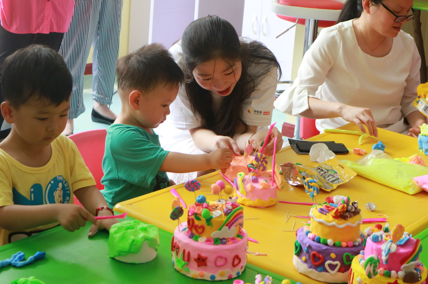 中安科愛心團(tuán)隊(duì)的志愿者們陪孩子們做各種手工活動(dòng)